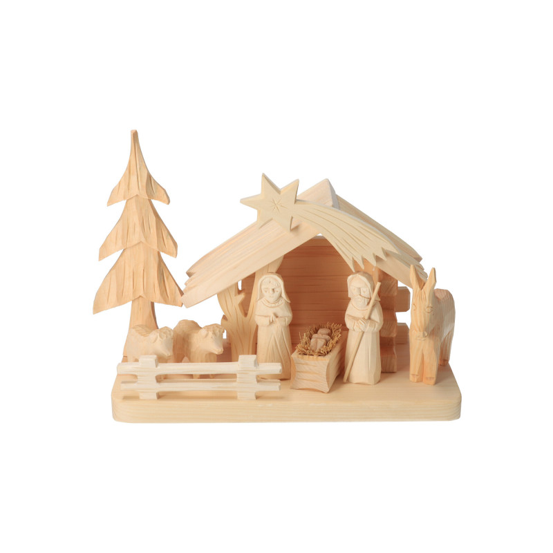 Vánoční betlém je vyroben z borovicového a lipového masivu. Figurky jsou ručně opracované a zdobené a každý kus je tak nezaměnitelný originál.