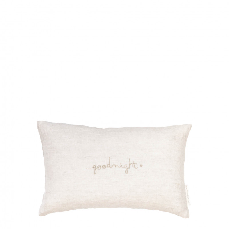 Dekorační polštář s vyšitým nápisem Good night dodá interiéru pocit lásky a útulnosti. Přírodní látka a jemná béžová výšivka působí klidně a jemně naznačuje tiché připomenutí, že domov je místo, kde se cítíme výjimečně. Ideální na pohovku, postel i do čtecího koutku. Je součástí kolekce značky Bastion Collections LÉTO 2026.