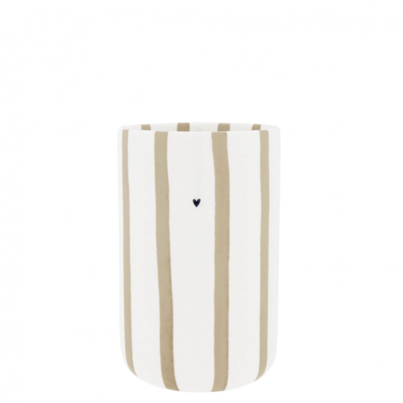 Keramická nádoba s širokými pruhy v odstínu hnědého akvarelu, která vnese do kuchyně klid a harmonii. Jemně drží příbory i drobné kuchyňské pomocníky. Vše je přehledně po ruce, linka zůstává čistá a kuchyně působí upraveně a útulně. Malý detail, který promění každodenní vaření v příjemný rituál. Z kolekce LÉTO 2026 od Bastion Collections.