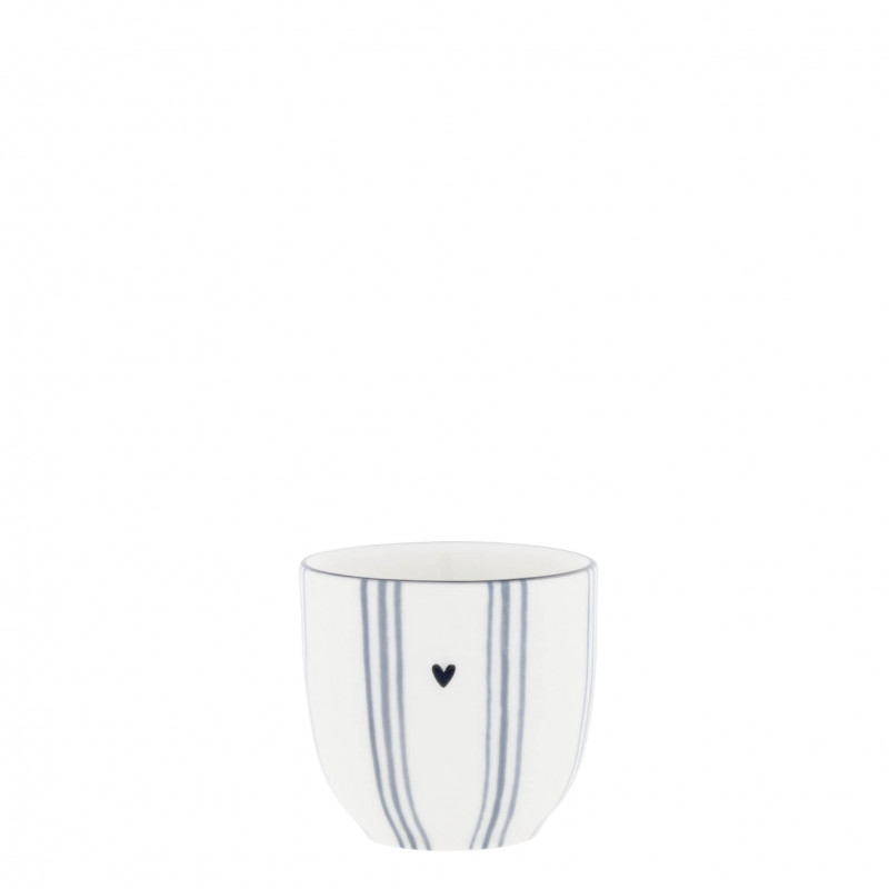 Bílý keramický stojánek ve tvaru kalíšku s jemnými proužky v akvarelově modré promění obyčejnou snídani v malý slavnostní okamžik. Ideální pro chvíle, kdy si chcete ráno vychutnat bez spěchu a s úsměvem. Součástí kolekce LÉTO 2026 od značky Bastion Collections.