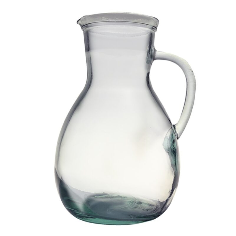 Čirý skleněný džbán s uchem. Vhodný například na vodu s citrónem a mátou když přijde návštěva.