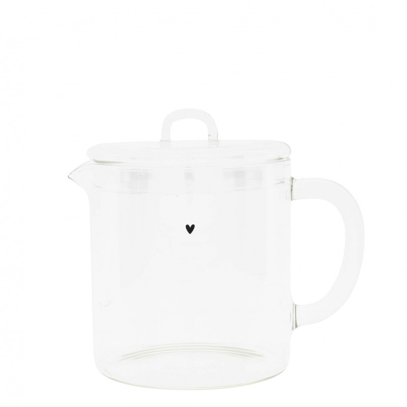 Skleněná konvice na čaj s černým srdíčkem se může stát při stolování milou výzvou ke klidným chvílím. Čisté sklo nechá vyniknout barvu i tanec čajových lístků, zatímco drobné černé srdce, typické pro Bastion Collections, dodává konvici něžný a hřejivý detail.