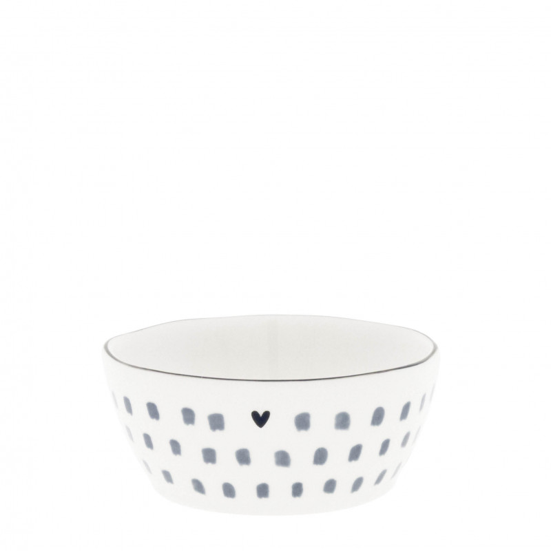 Malá keramická miska o objemu 140 ml v bílé barvě s modrými tečkami po obvodu misky, je ideální pro servírování omáček, dipů, dresinků a jiných drobných pochutin.
