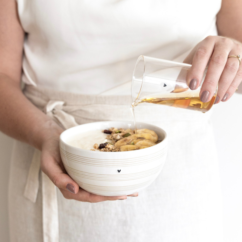 Keramická miska zdobená jemnými linkami v odstínu béžového akvarelu přináší na stůl nádech něhy a hravosti. Skvěle se hodí pro ovoce, zeleninu či drobné pochutiny a každý pokrm v ní působí lehce a radostně. Malý detail, který promění každodenní snídani v útulný a příjemný rituál. Z kolekce LÉTO 2026 od holandské značky Bastion Collections.