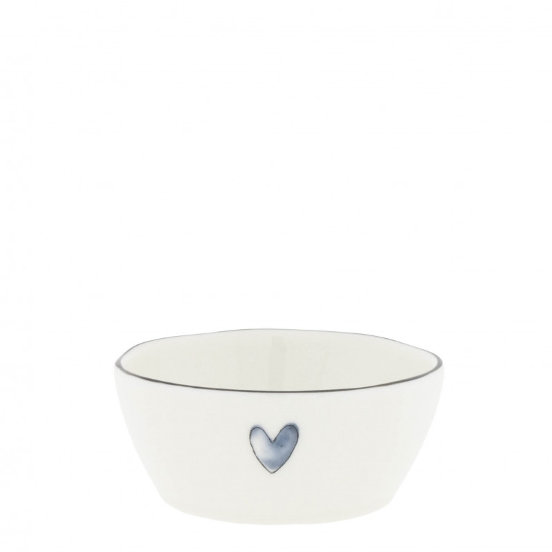 Malá keramická mistička o objemu 140 ml v bílé barvě, zdobená modrým srdíčkem je ideální pro servírování omáček, dipů, dresinků a jiných drobných pochutin.