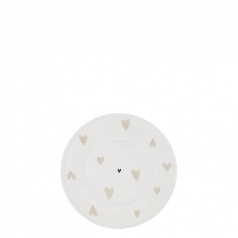 Jemně dekorovaný bílý podšálek pod váš oblíbený hrnek s kávou nebo čajem, stvořený pro klidné chvíle pohody. Talířek zdobí srdíčka v odstínu hnědého akvarelu, která mu propůjčují lehkost a romantický nádech. Z kolekce LÉTO 2026 od holandské značky Bastion Collections.