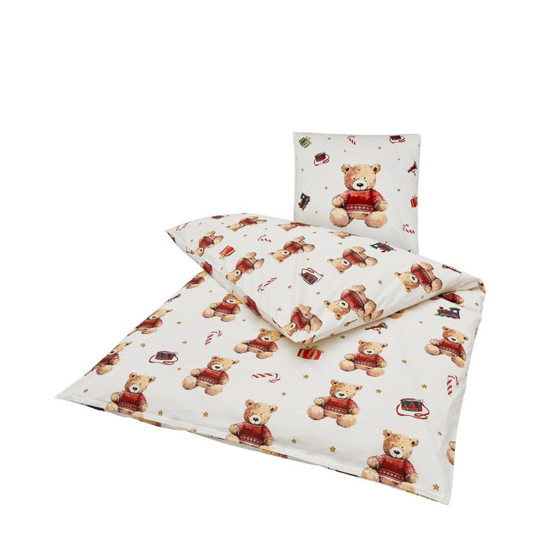 Vneste do své ložnice kouzlo zimní pohody s tímto roztomilým povlečením s motivem medvídka v bordó vánočním svetru. Na bílém podkladu vyniká detailní potisk s motivy drobných mašinek, bubínků, trumpetek a dalších vánočních ozdob, které dodávají povlečení hravý a sváteční vzhled.