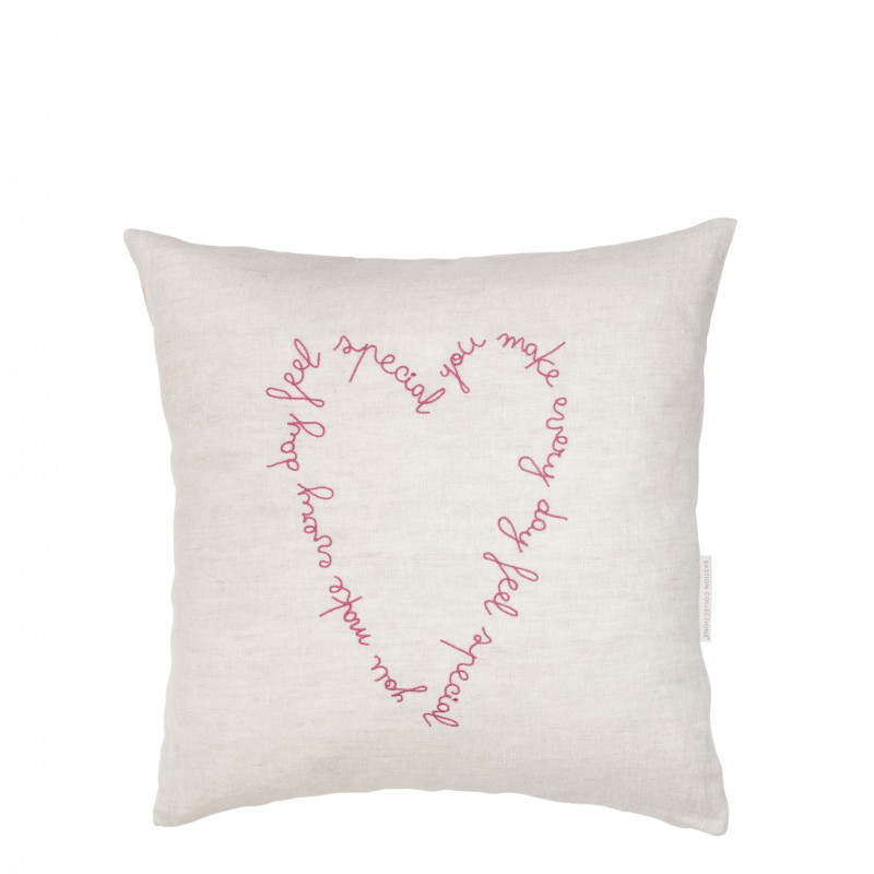 Dekorační povlak na polštář s vyšitým srdcem a něžným vzkazem dodá interiéru pocit lásky a útulnosti. Přírodní látka a jemná růžová výšivka působí klidně a hřejivě a jemně naznačuje tiché připomenutí, že domov je místo, kde se cítíme výjimečně. Ideální na pohovku, postel i do čtecího koutku. Je součástí kolekce značky Bastion Collections LÉTO 2026.